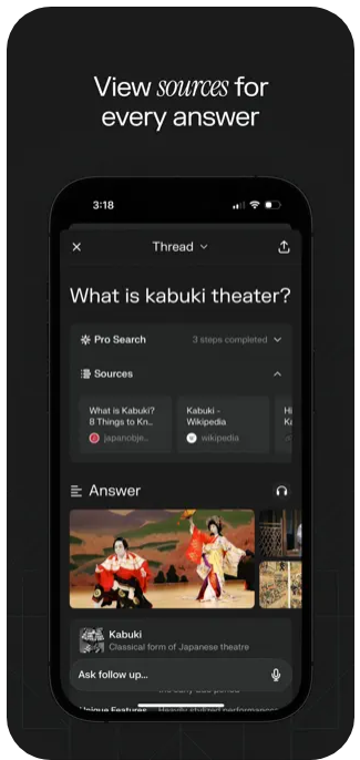 또한, Thread Follow-Up 기능은 대화를 이어가며 더 깊은 이해를 돕습니다. 모든 답변에는 신뢰할 수 있는 출처가 명시되어 있어 정보의 신뢰성을 보장합니다.