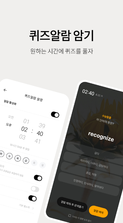 - 사용자 맞춤 퀴즈 알람으로 학습 지속성 강화