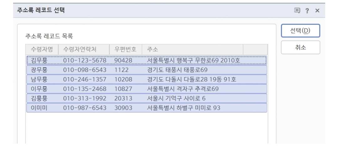 모든 설정이 완료된 후, 문서를 출력하여 주소록 라벨링 작업을 마무리합니다.