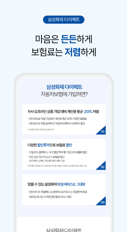 | 가입 편의 | 맞춤 할인 | 빠른 보상 |