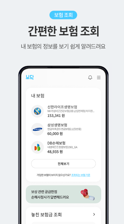 | 가입정보 확인 | 보장력 분석 | 신속 청구 지원 |