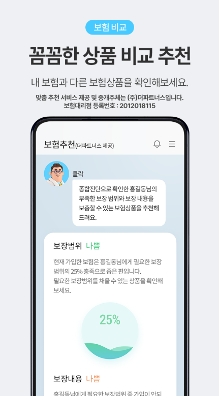 고객 만족도 향상과 함께 보험 시장의 혁신을 이끌어갈 중요한 역할을 수행하고 있습니다. 또한, 플랫폼 내에 마련된 전문가 상담 채널을 통해 보험 관련 의문점을 신속하게 해결할 수 있으며, 사용자의 건강 상태를 종합적으로 고려한 맞춤형 보험 추천을 실현하여 더욱 효율적인 금융 생활을 지원합니다.