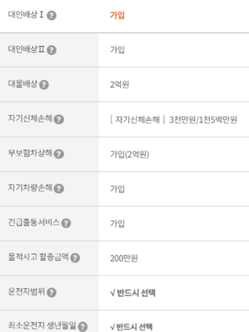3) 대물배상, 대인배상만 가입하는 것이 아니고 모든 항목에 가입하는 것이 좋습니다.