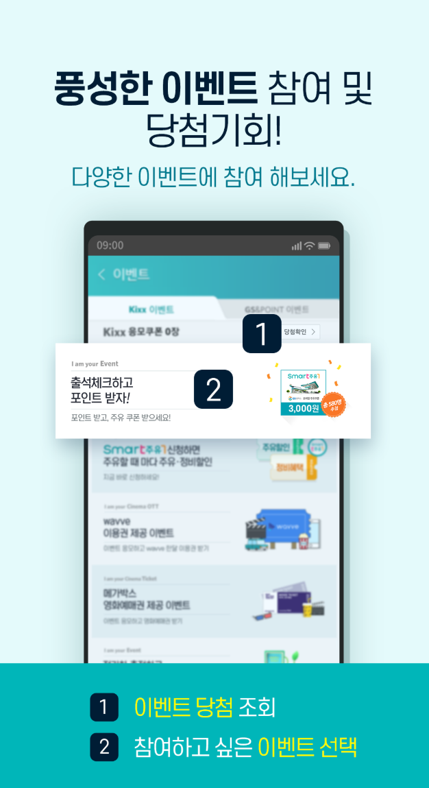| 모바일 카드 기능 | 포인트·이벤트 관리 | 정비·지도 안내 |