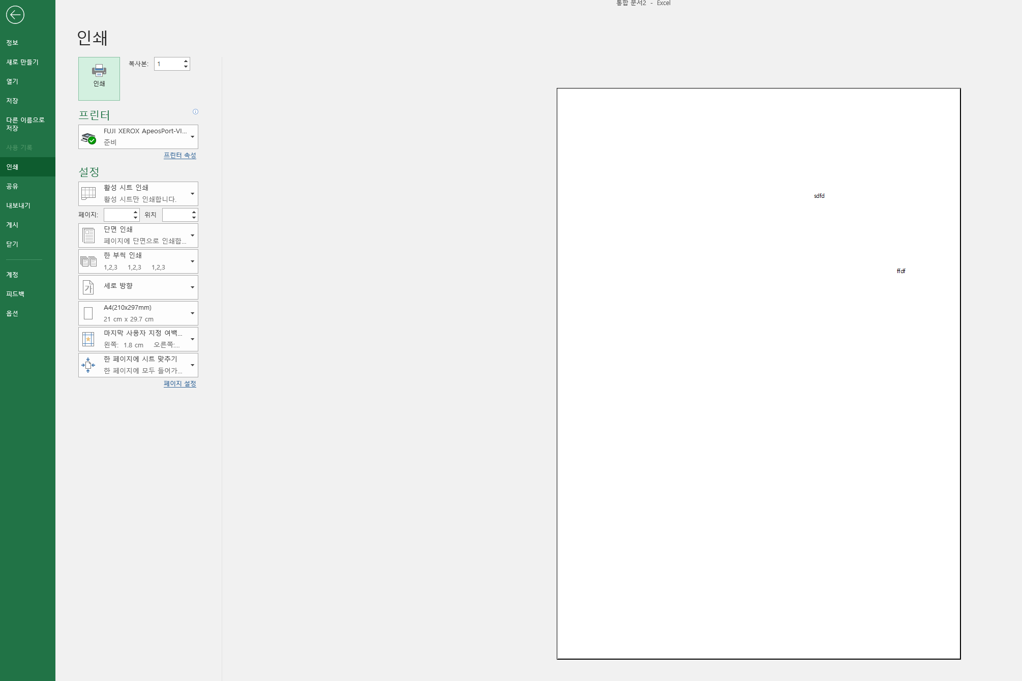 - 엑셀 꽉차게 인쇄 시 최적의 출력 옵션 설정