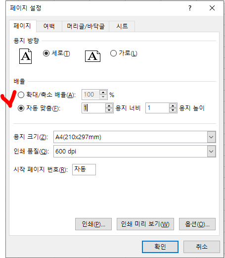 ⭐ 엑셀 꽉차게 인쇄 고급 옵션 활용법