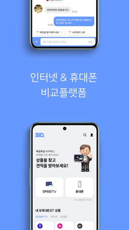 퍼스앱을 통해 더 많은 혜택을 손쉽게 비교하고, 최적의 조건으로 인터넷과 휴대폰을 이용하세요. 발품 팔지 않고 손쉽게 필요한 혜택을 얻을 수 있습니다.