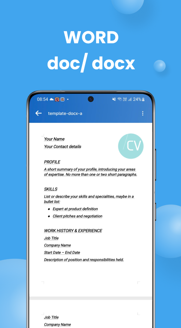 이 앱은 PDF뿐만 아니라 Word(DOCX), Excel(XLSX), PPTX 형식도 지원합니다. 모든 사무 문서를 Android 기기에서 직접 열고 관리할 수 있는 편리한 기능을 제공합니다.