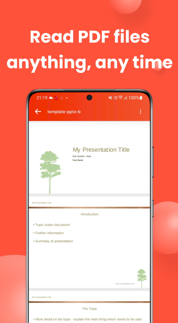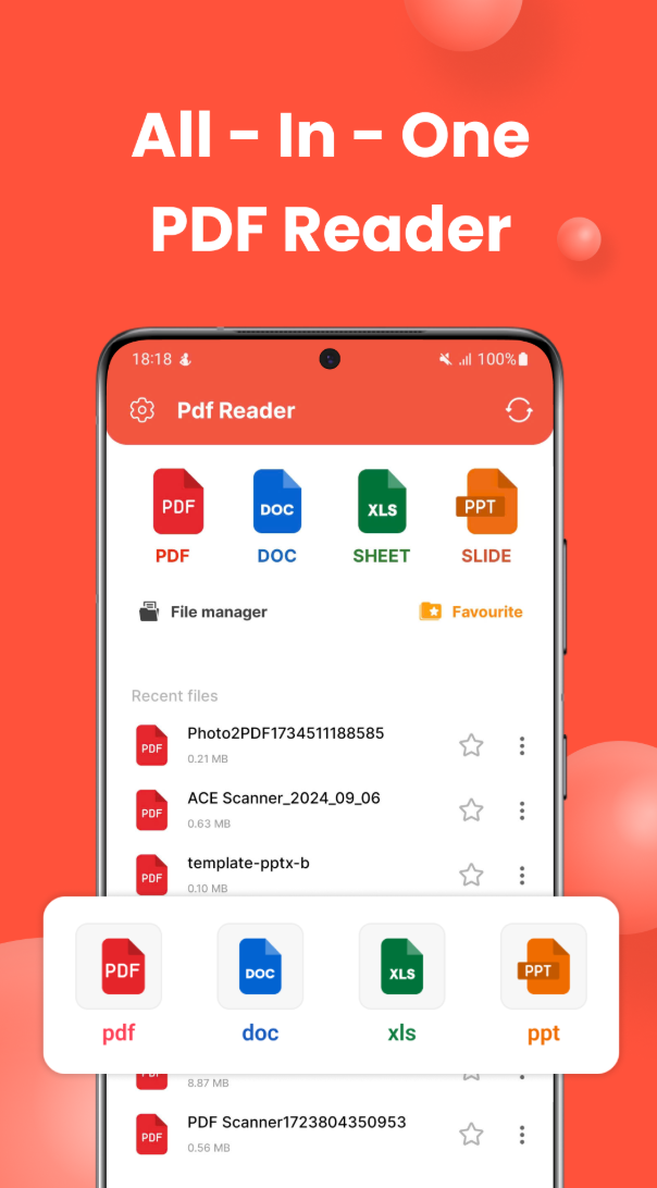 PDF 앱 Reader & PDF Viewer는 PDF, Word, Excel, PPT 문서를 하나의 앱으로 편리하게 열고 관리할 수 있는 올인원 솔루션입니다. 이 앱을 통해 문서 작업이 한층 더 효율적이고 편리해집니다. Android 기기에서 다양한 문서를 쉽게 열고 관리할 수 있는 필수 도구로 자리매김할 것입니다.
