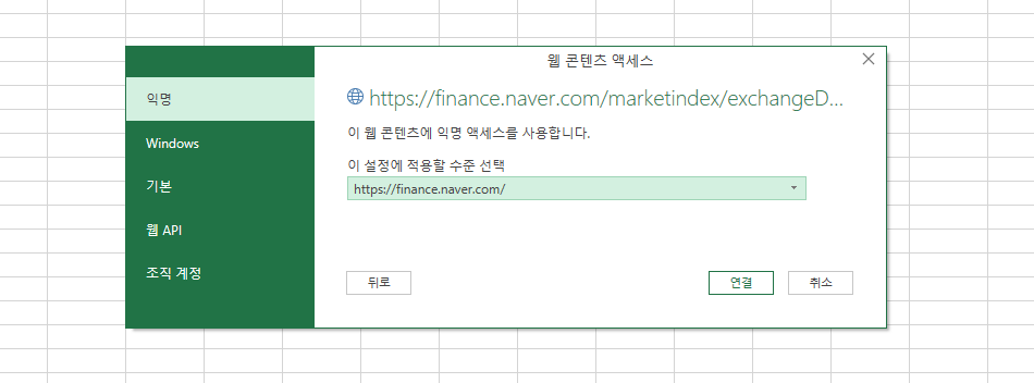 실시간 Excel에 연동하려면 '데이터' 탭에서 '데이터 가져오기'를 선택한 후 '웹'을 클릭합니다. 그리고 'https://finance.naver.com/marketindex/exchangeDetail.naver?marketindexCd=FX_USDKRW' 링크를 입력하면 실시간 정보를 가져올 수 있습니다.