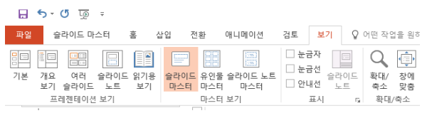 - "보기" 탭에서 "슬라이드 마스터"를 클릭합니다.