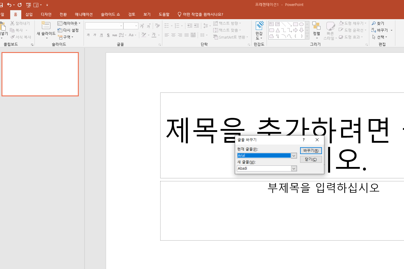 - "바꾸기" 버튼을 클릭하면, PPT 전체 문서에 선택한 것이 적용됩니다.