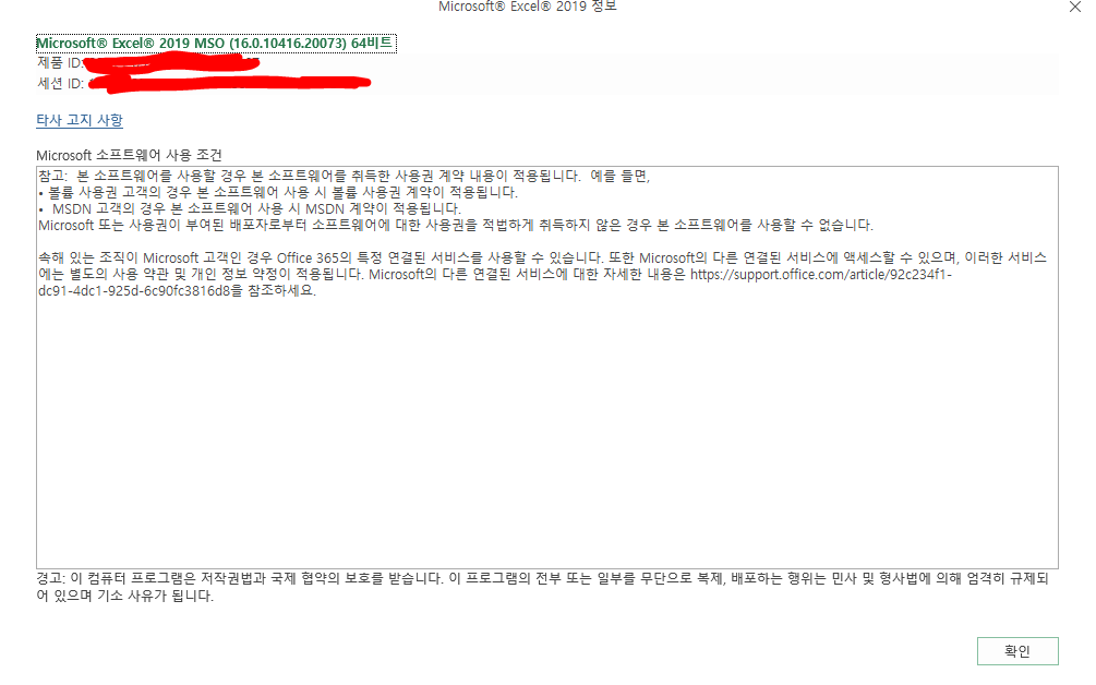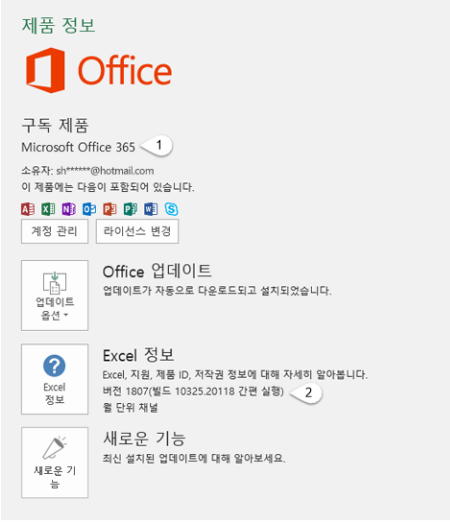 A. 엑셀 버전은 파일 > 계정 메뉴에서 확인할 수 있습니다. 또한, Excel 정보 버튼을 클릭하면 더욱 상세한 version 정보를 볼 수 있습니다.