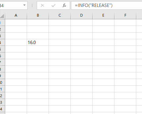 Excel에서 직접 함수를 이용해 version을 확인할 수도 있습니다. 빈 셀에 =INFO("RELEASE") 함수를 입력하고 엔터를 누르면 Excel version 정보가 표시됩니다. 이 방법은 Excel 내에서 바로 version 정보를 확인할 수 있어 유용합니다.