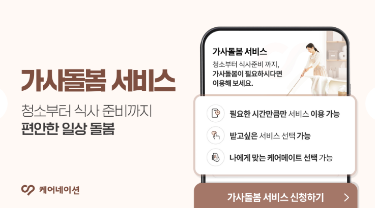 간병, 동행, 가사 돌봄, 산후 돌봄 등 다양한 돌봄 서비스를 제공하는 플랫폼으로, 전국 어디서든 24시간 매칭을 지원하여 빠르고 간편한 서비스 이용이 가능합니다.