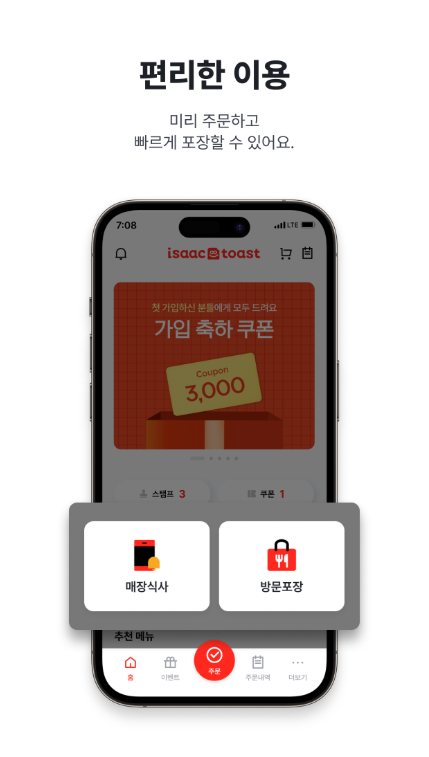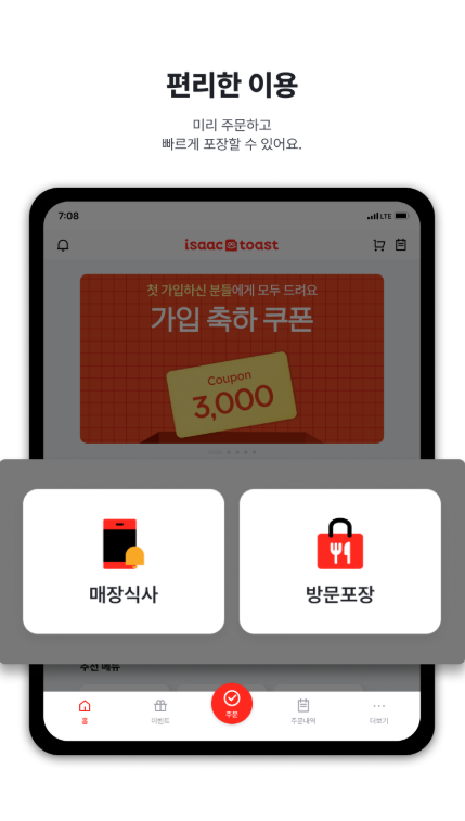 이삭토스트 앱의 주요 기능