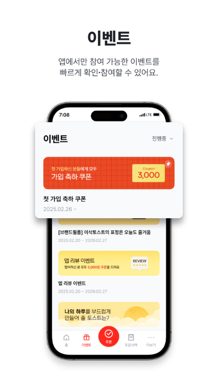 앱을 통해 주문하면 토스트를 주문 시 다양한 혜택을 제공합니다. 예를 들어, 다양한 쿠폰 사용, 추가 할인 등을 통해 주문 시 더 많은 혜택을 받을 수 있습니다.