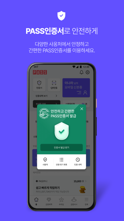 PASS 앱은 SK텔레콤 사용자에게 제공되는 다양한 인증 및 서비스 기능을 통합한 모바일 플랫폼입니다. 이를 통해 본인 인증, 모바일 신분증, 금융 서비스 등 여러 기능을 한 번에 이용할 수 있어, 매우 편리하고 안전한 모바일 생활을 제공합니다.