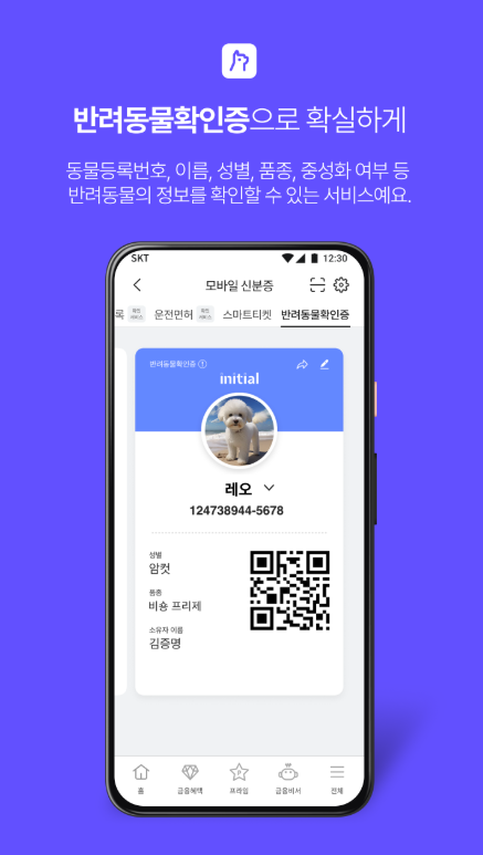 PASS 앱은 반려동물 등록번호, 이름, 성별 등 반려동물의 다양한 정보를 손쉽게 확인하고 관리할 수 있는 기능도 제공합니다.