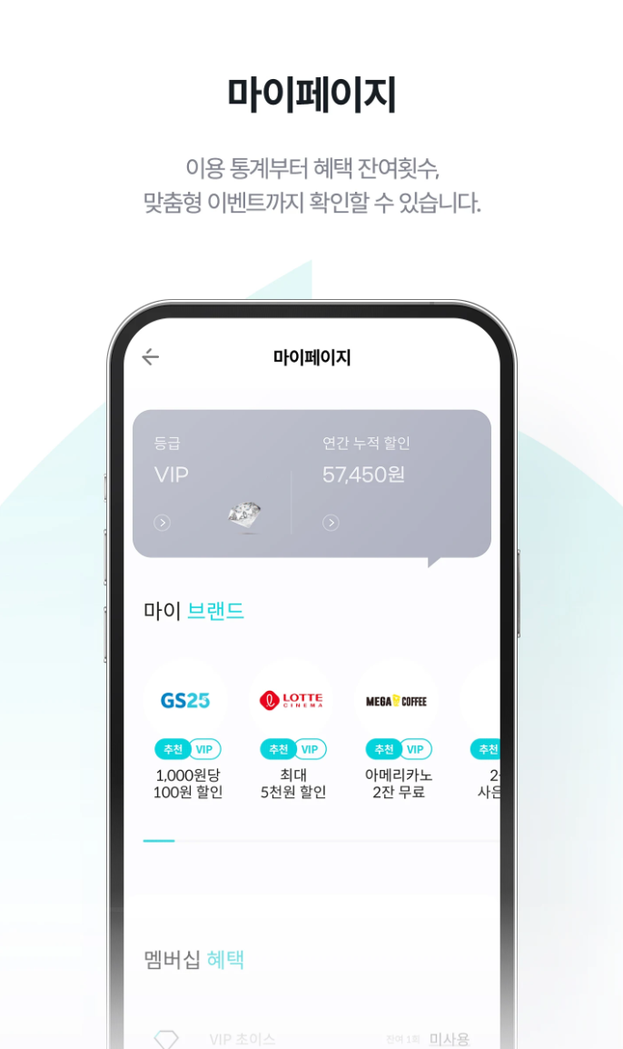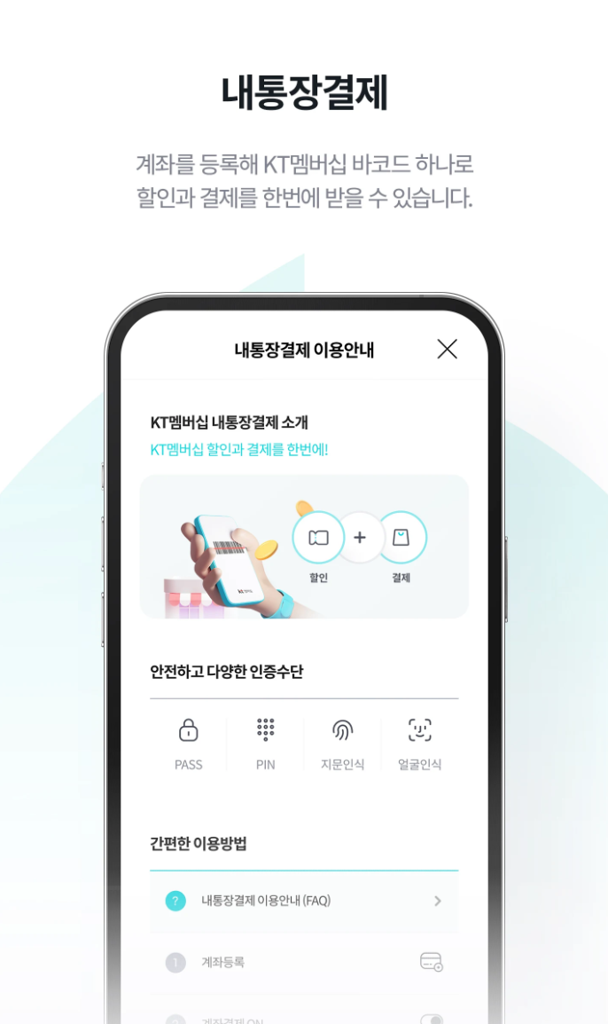KT멤버십 앱 하나로 다양한 제휴 할인과 포인트 적립, 사용 내역 조회가 가능해 시간과 비용을 절약할 수 있습니다.