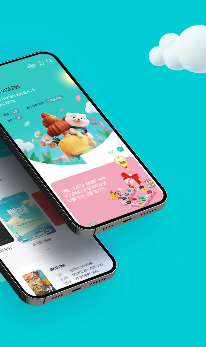 푸시 알림 기능으로 놓치기 쉬운 이벤트와 프로모션을 실시간으로 받아볼 수 있습니다. 다양한 제휴사 할인 정보가 카테고리별로 정리되어 있어 찾기 쉽습니다. 특히, KT 모바일, 인터넷, TV 등 KT 전 서비스와 연동되어 타 서비스 고객도 손쉽게 가입하고 사용할 수 있습니다.