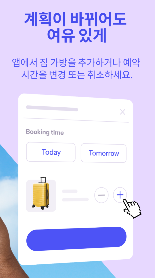 일일 요금 체계로 언제든 원하는 시간에 예약을 수정하거나 취소할 수 있습니다. 추가 짐도 앱에서 바로 등록하여 보관 시간을 연장할 수 있으며, 변경 수수료 없이 간편하게 일정을 조정할 수 있습니다. 고객 친화적 정책으로 계획 변경에도 유연하게 대응합니다.