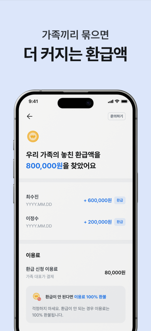 앱 설치 후 회원가입만으로 즉시 환급금 조회와 신고 진행이 가능합니다.