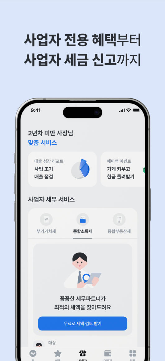 A. 앱 설치 후 본인 인증을 완료하면 회원가입이 즉시 완료되며, 국세청 연동 동의만으로 신고 지원 준비가 끝납니다.