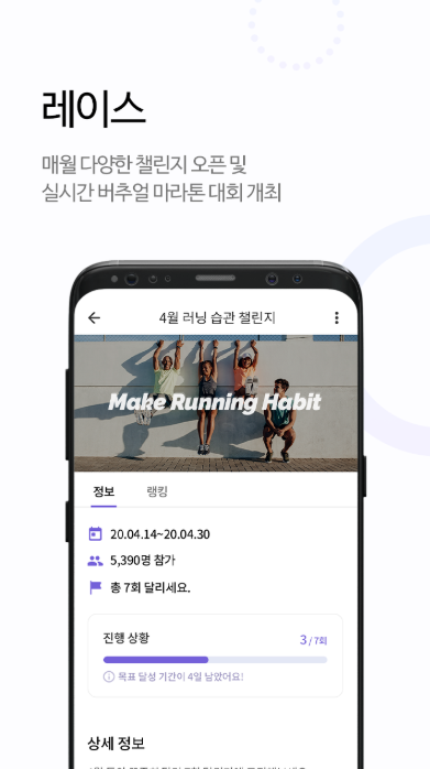 • 실시간 비대면 마라톤 참여 기능으로 언제 어디서든 대회 경험 가능