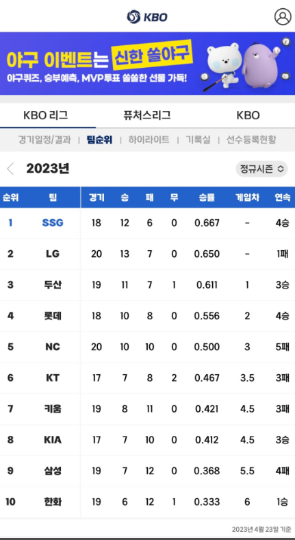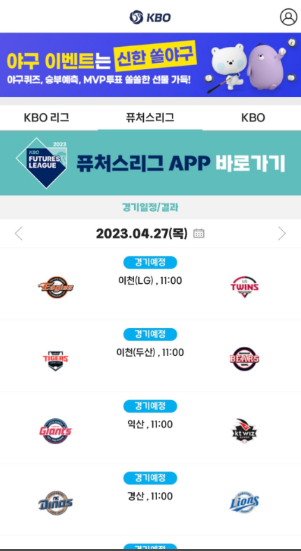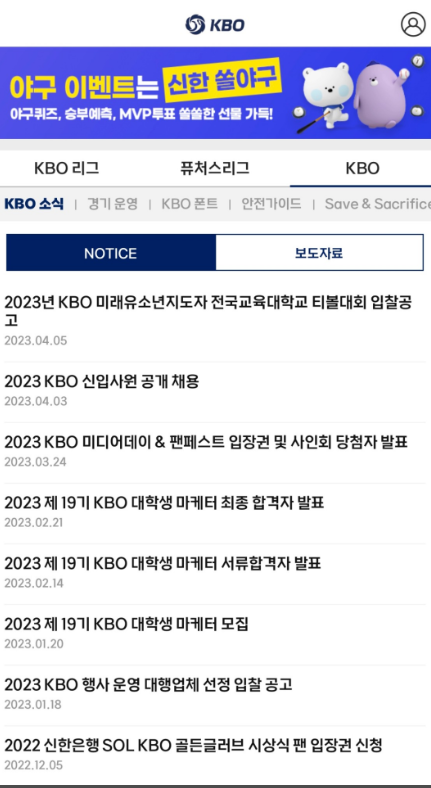 | 알림 설정 | 경기 일정 및 결과 정보를 푸시 알림으로 수신 | 설정 메뉴에서 원하는 팀을 즐겨찾기하세요. |