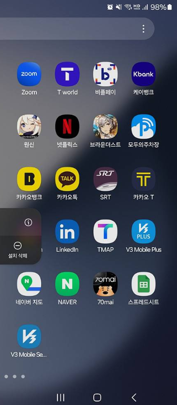 앱서랍에서 자주 사용하지 않는 앱은 숨겨 둘 수 있어, 목록을 깔끔하게 유지할 수 있습니다.