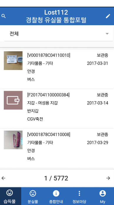 분실물 관리와 정보 제공을 위한 로스트112 앱은 국민의 소중한 물건을 안전하게 되찾아 드립니다.