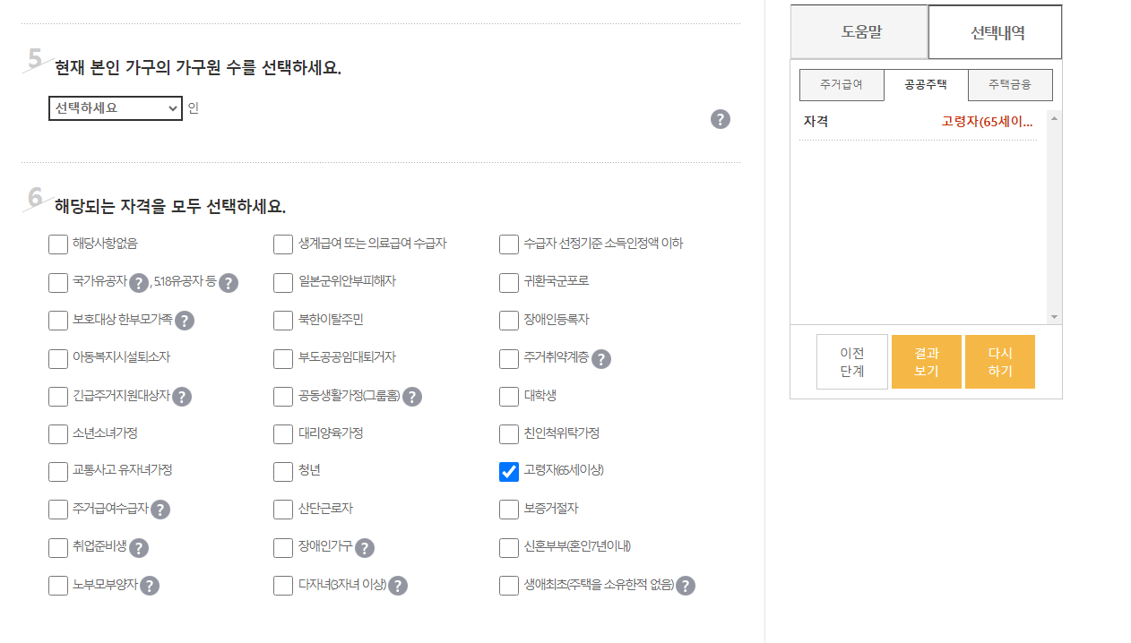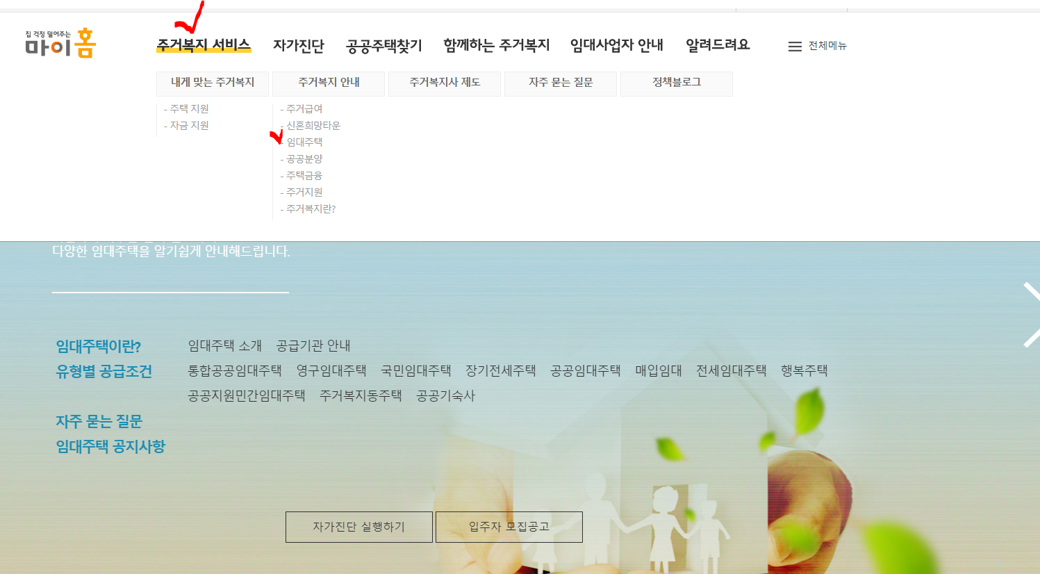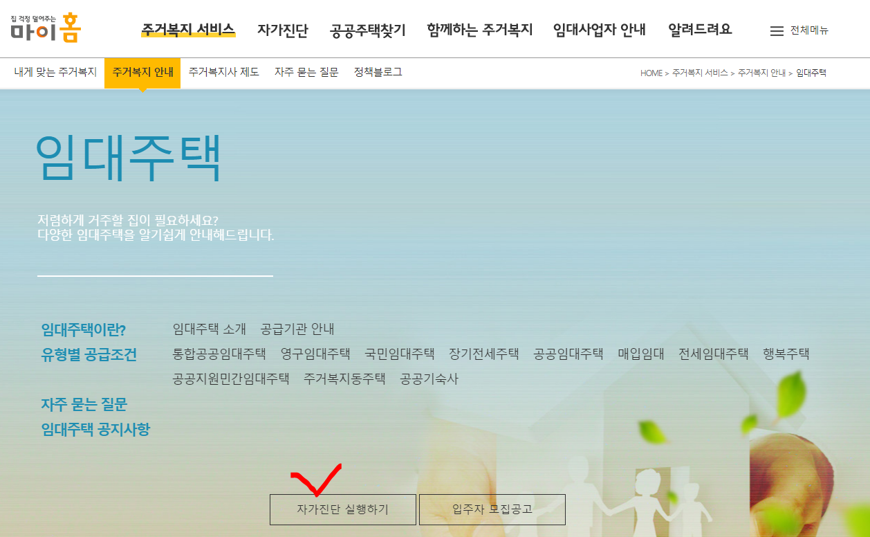 2. 자가진단을 통해 내 조건에 맞는 주택을 찾아볼 수 있습니다.