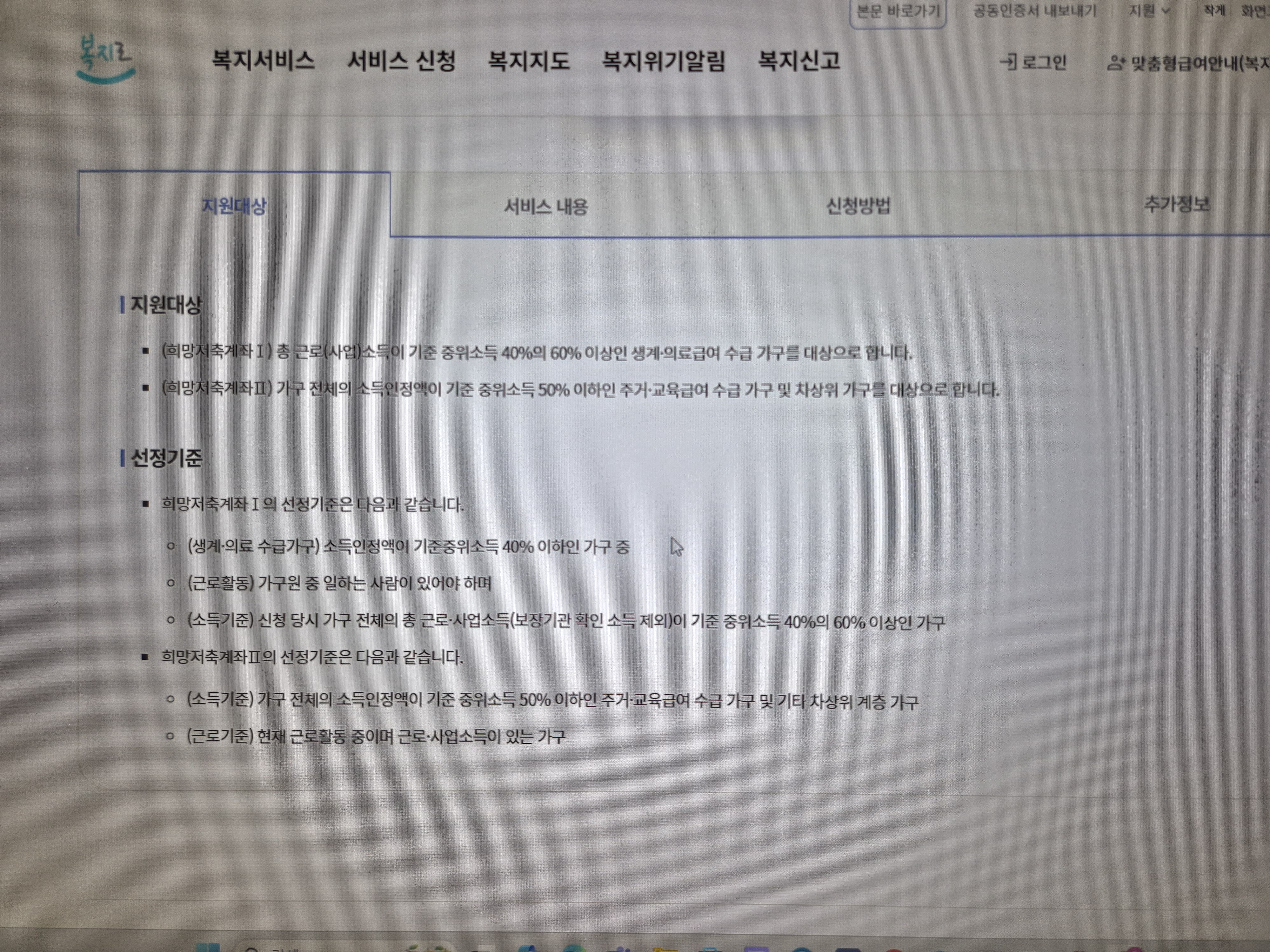 희망저축계좌2 가입 대상 및 조건