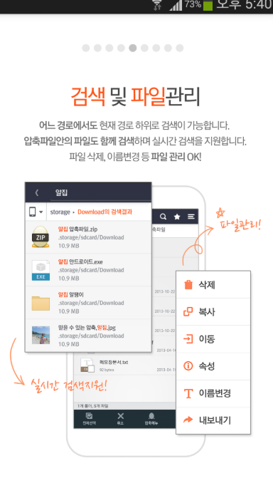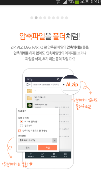 - 다양한 압축 포맷 지원 (ZIP, RAR, EGG 등)