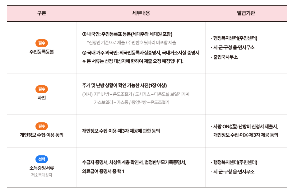 사랑온 난방비 신청방법 및 준비서류