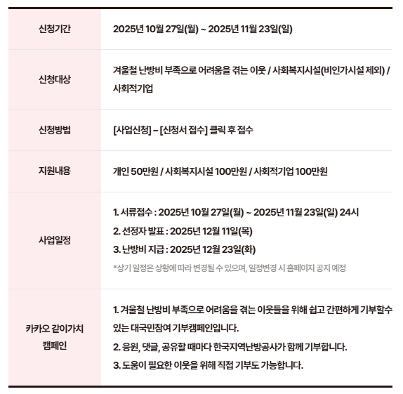 ⭐ 한국지역난방공사가 주관하는 따뜻한 겨울 지원 프로그램