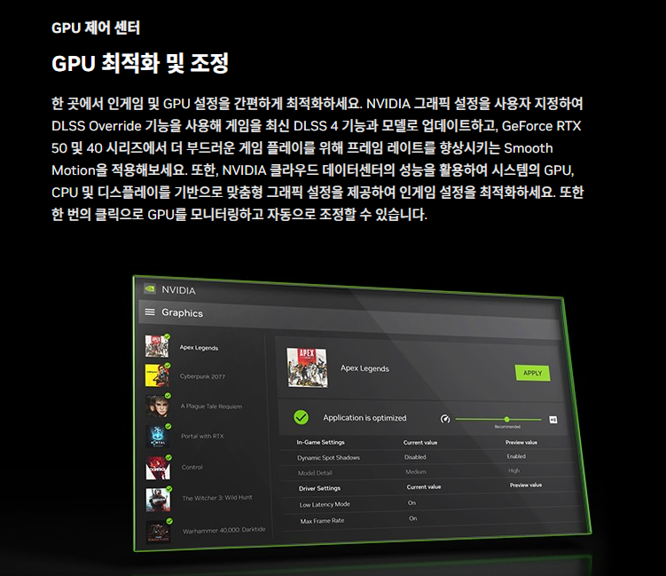 엔비디아 앱 기능 요약